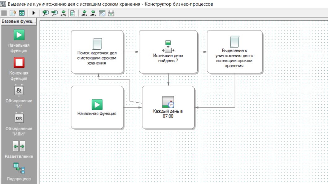 Автоматическое выделение дел к уничтожению по истечению сроков хранения. Бизнес-процесс в платформе Docsvision ежедневно осуществляет поиск карточек дел с истёкшим сроком хранения и устанавливает для них признак «Выделено к уничтожению».