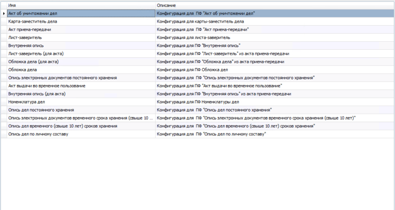 В модуле реализован справочник готовых печатных форм, которые используются для организации долговременного хранения документов: