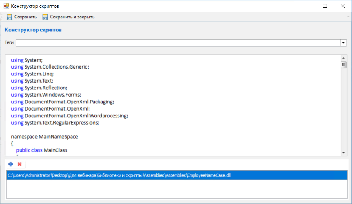 Модуль «Конструктор шаблонов» ранее уже позволял использовать скрипты для реализации сложной логики вычисления данных при синхронизации с файлом. Теперь появилась возможность подключать и внешние сборки в эти скрипты. Это расширяет возможности конструктора и делает разработку более удобной и быстрой.