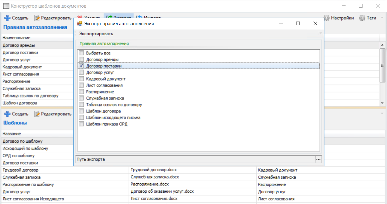 Добавлена возможность выгрузки настроек, сделанных в «Конструкторе шаблонов». Новая функция позволяет переносить настройки шаблонов с одного сервера на другой.