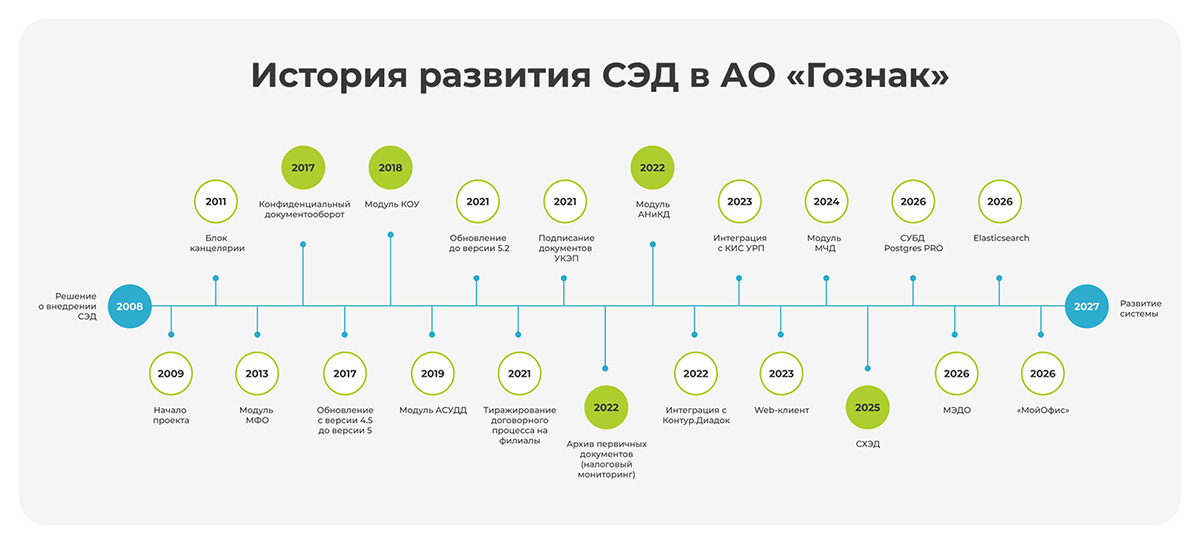 В отдельных защищённых контурах реализованы системы конфиденциального документооборота и долговременного электронного архива, также разработанные на базе платформы Docsvision.