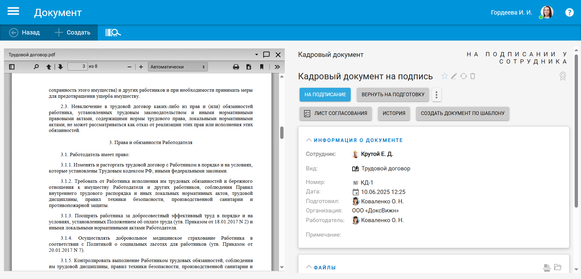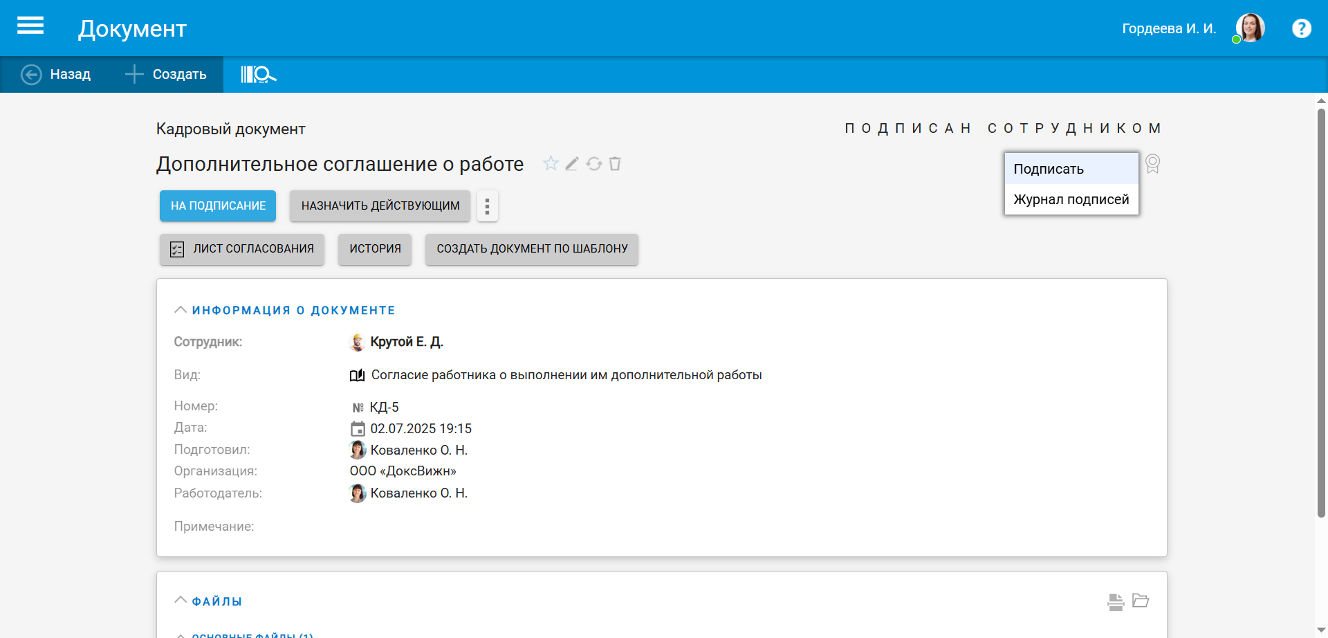 В этом случае компания фактически получает не только цифровизацию кадровых процессов, но и единое пространство для всех документов.